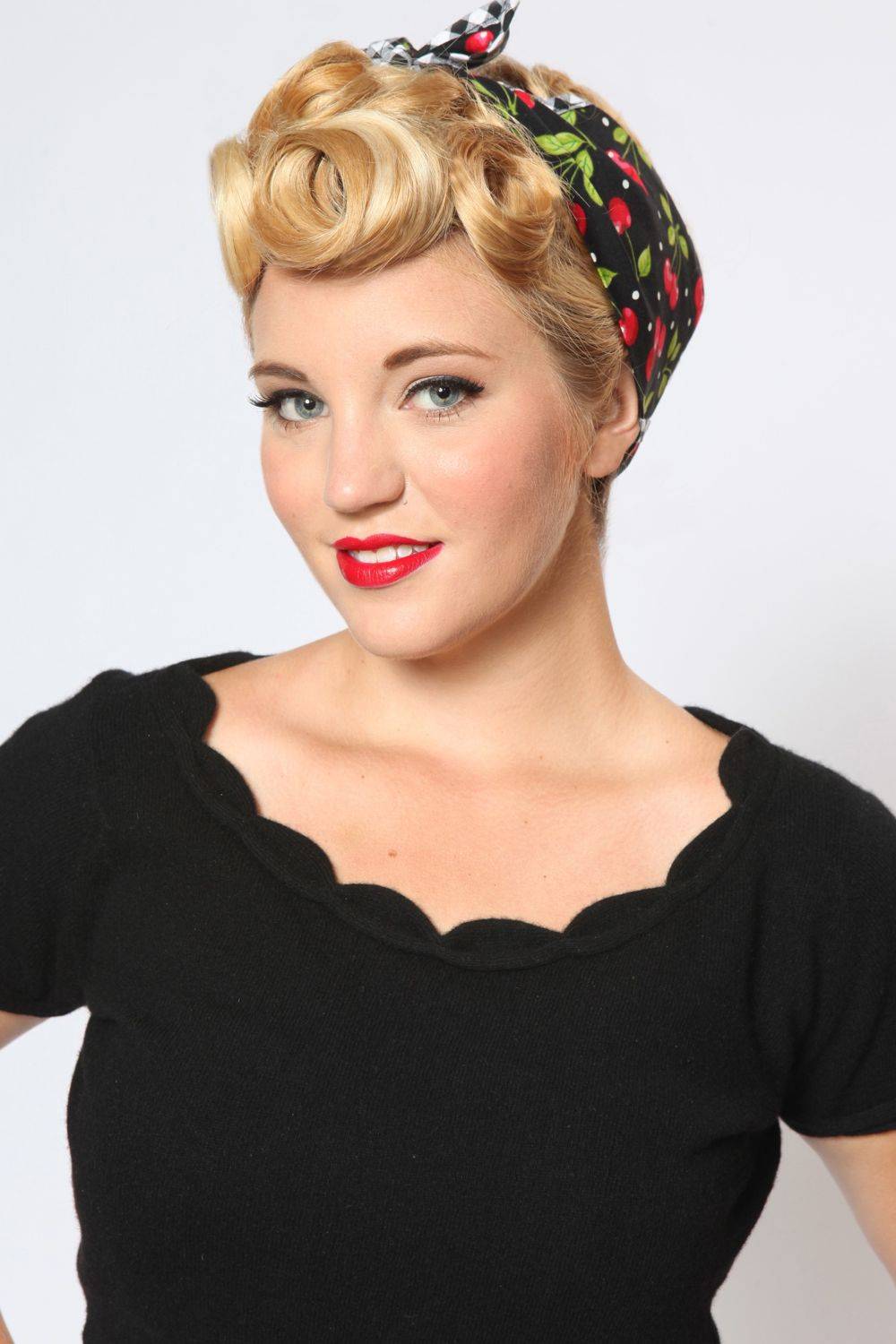 Итог должен получится, похожий на шапочку. Для надёжности приколите заколками-невидимками по бокам. Вуаля, и Вы, словно девушка с пин-ап постера: такая же игривая и привлекательная! Возьмите на заметку: этот вариант лучше носить с завязанными волосами, делая объём на макушке. Образ изумительно дополнит красная помада.