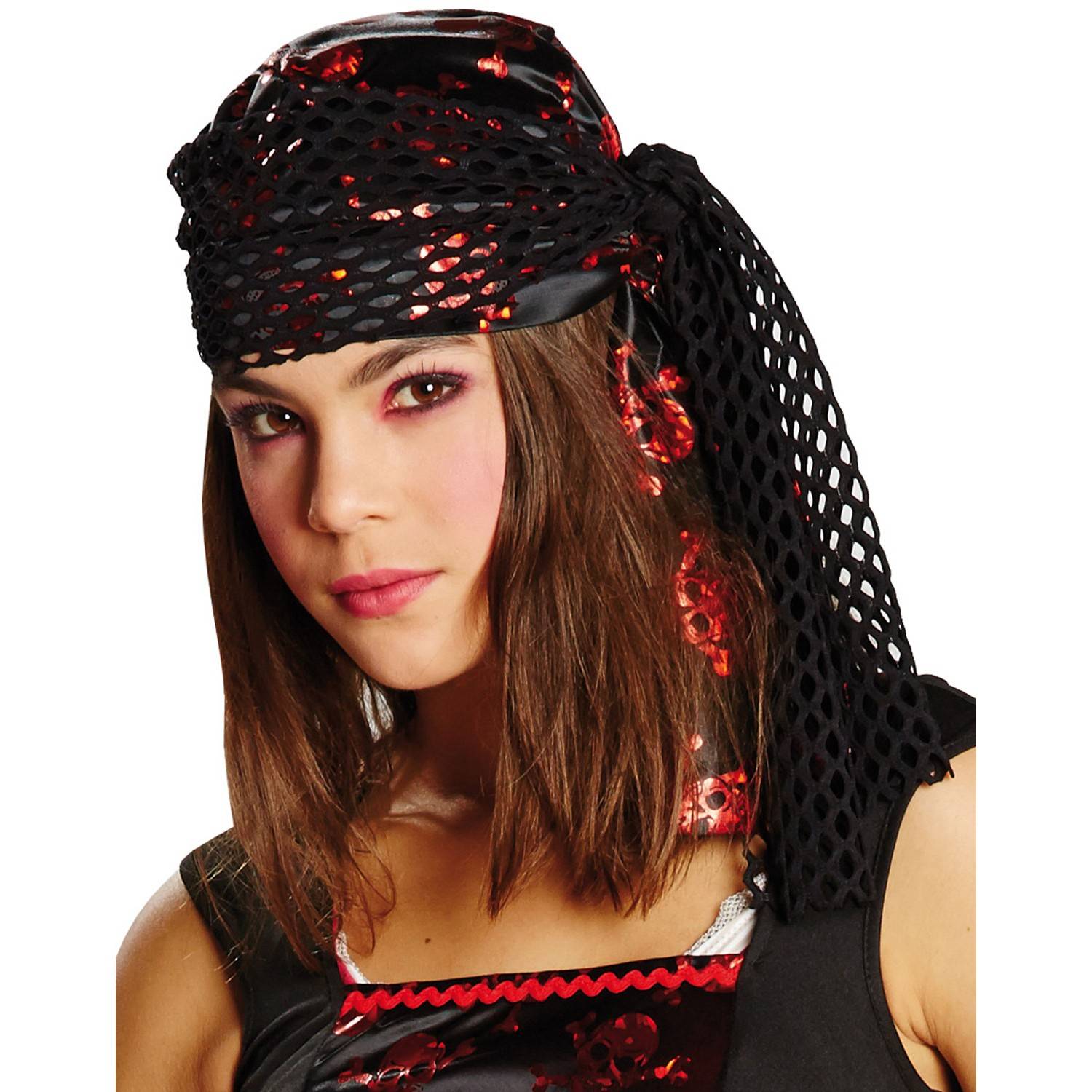 Приблизить повязку на голову к стилю пиратов способны черепа и кости в виде узоров. Причем пиратскую тематику можно спутать с готической, однако косынки покорителей морей выглядят более хулиганскими и задорными. Цвет изделия – преимущественно черный, однако встречаются и красочные банданы – синие, красные.