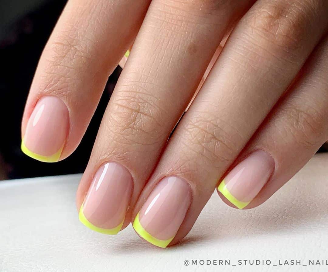 Короткий френч — замечательная основа для создания дополнительного декора. Красиво смотрится как простой классический френч со стразами, так и различные оттенки лака на кончиках ногтей.