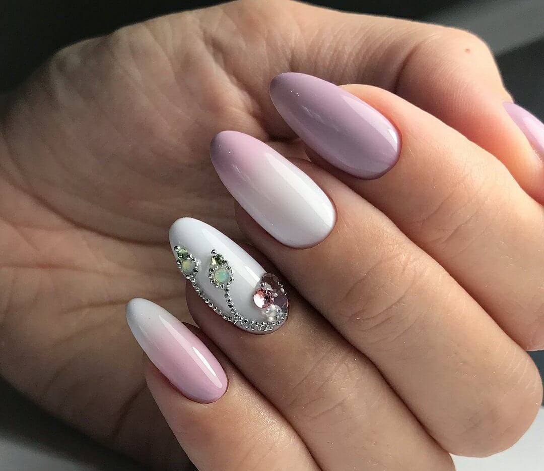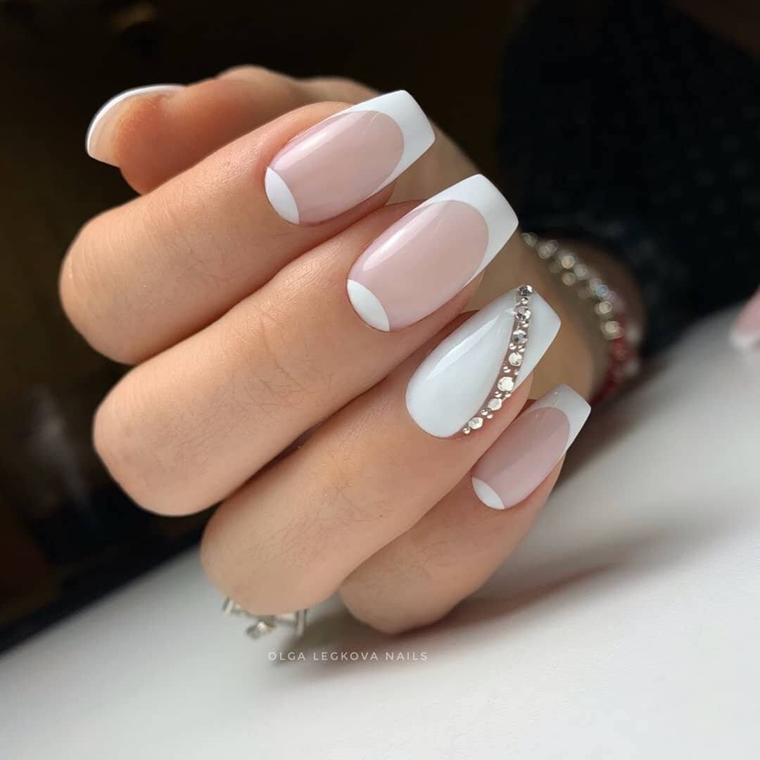 Маникюр, в котором сочетается белый цвет с другим оттенком, смотрится очень женственно, красиво и эффектно. С данным цветом утонченно сочетаются различные цвета и создается невероятно красивый тандем. Такой маникюр даст возможность девушке проявить свою сою нежность, романтичность, уникальность, элегантность или неординарность. Какое направление выбрать, решайте самостоятельно!