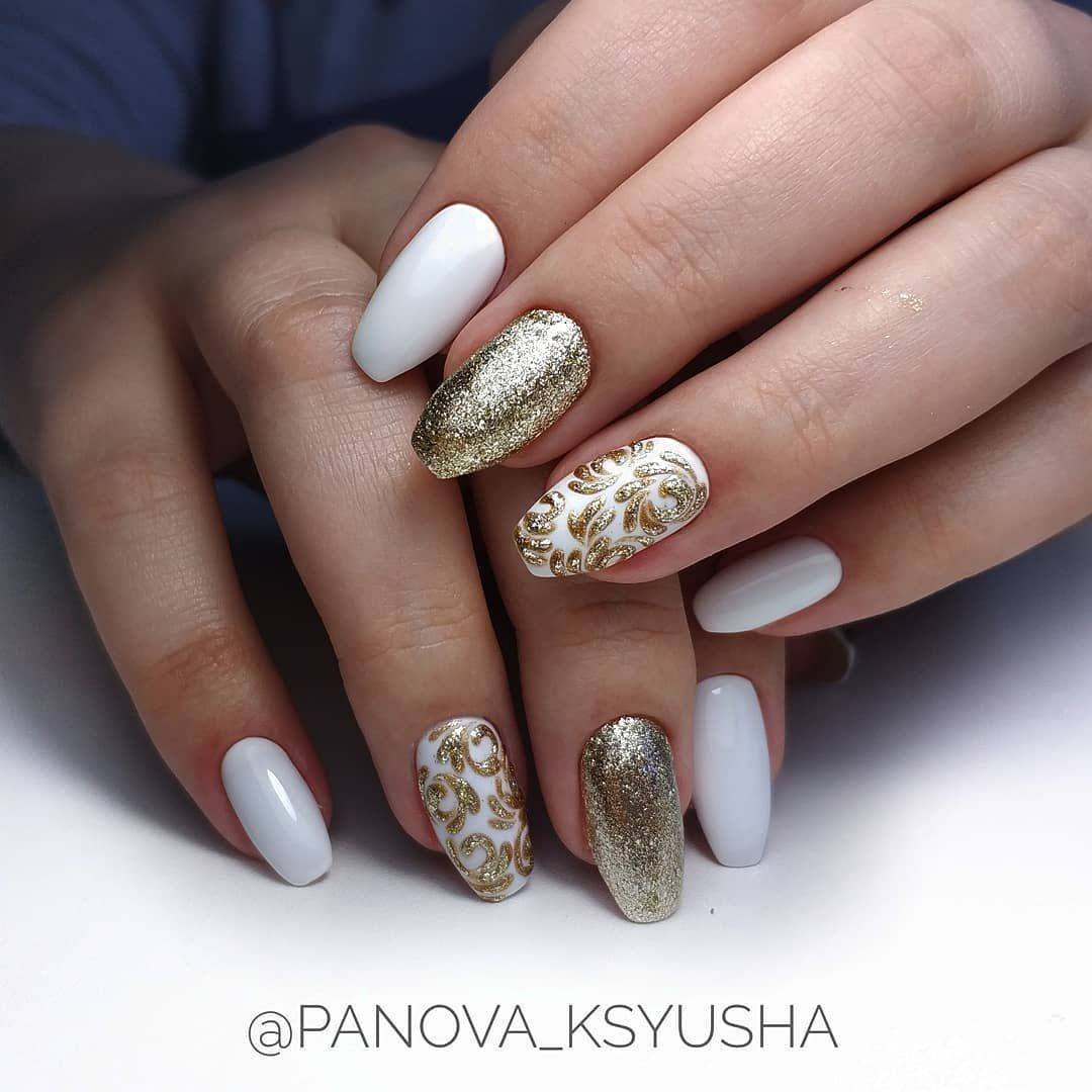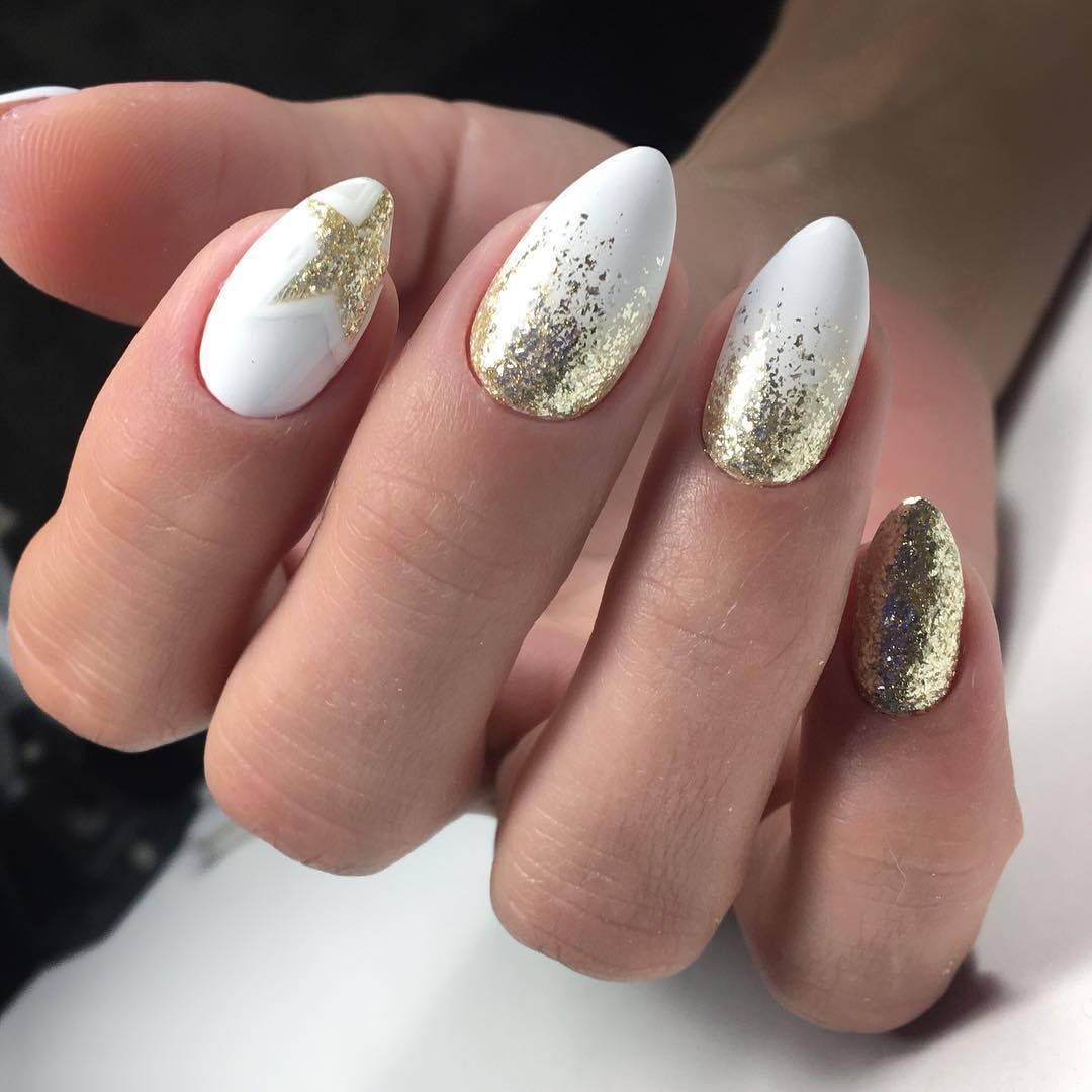 Праздничное золото стало классикой. С давних времен девушки надевали на мероприятия лучшие украшения. И хотя золотой бум ослаб, атрибуты золота в маникюре актуальны постоянно. Главное — умеренно использовать золото на короткой длине.