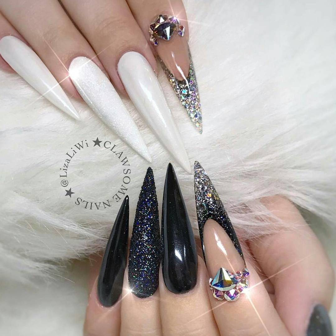 С блёстками. Блёстками украшаются все ногти (если у вас лак с блёстками) или декорируется какая-то часть поверхности, для создания оригинального дизайна.