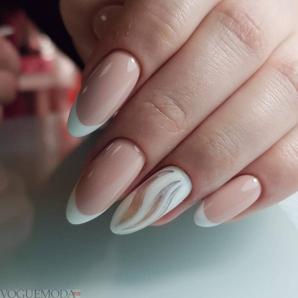 - молочный френч – этот дизайн можно назвать вечной классикой, он выглядит аккуратно и натурально, при желании его можно дополнить блестящим декором или росписью;