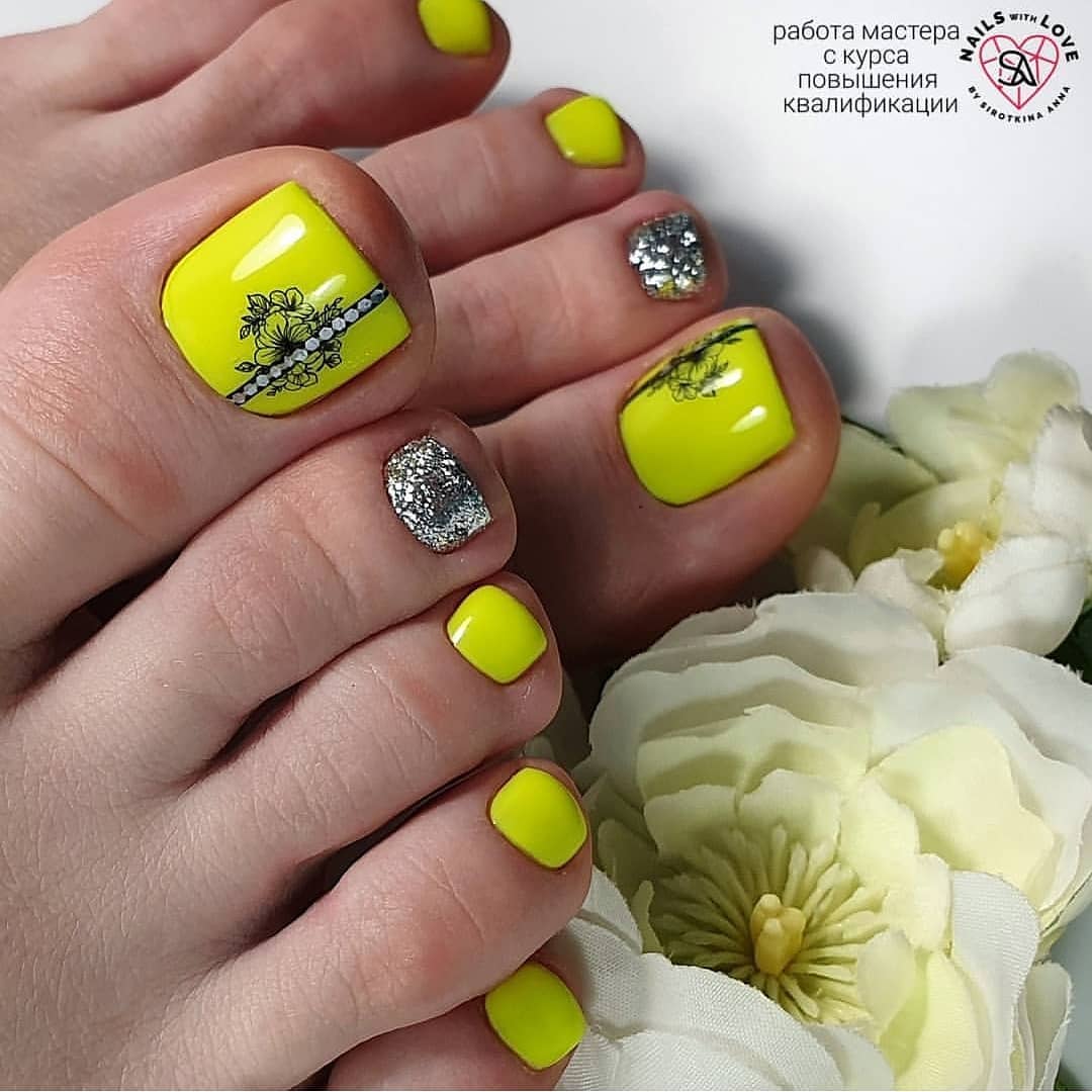 Яркий, насыщенный цвет апельсина и лимонный цвет нужно очень осторожно комбинировать с другими цветами, особенно ярких или кислотных оттенков. Выбирая именно этот цвет для педикюра, необходимо проконсультироваться со специалистом.