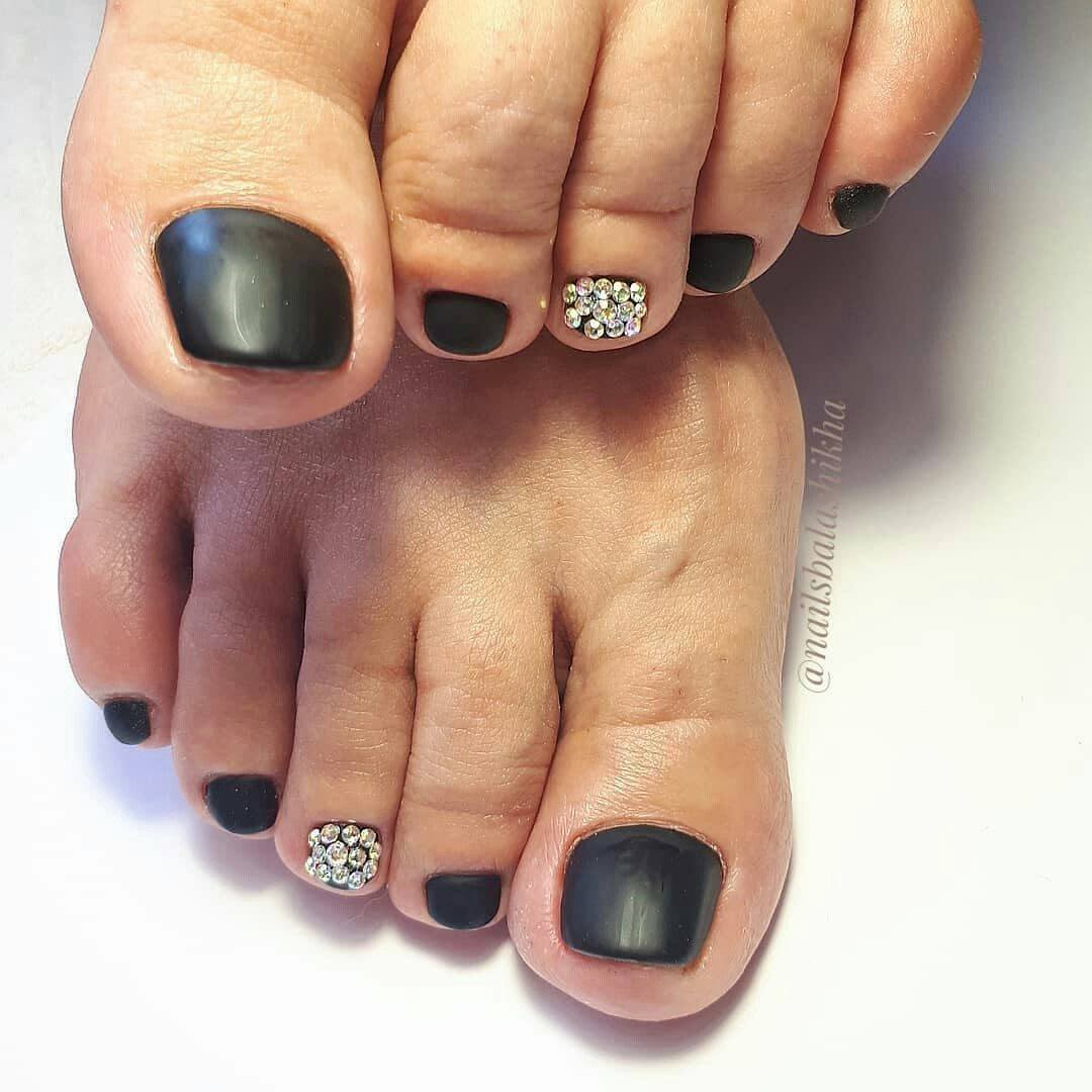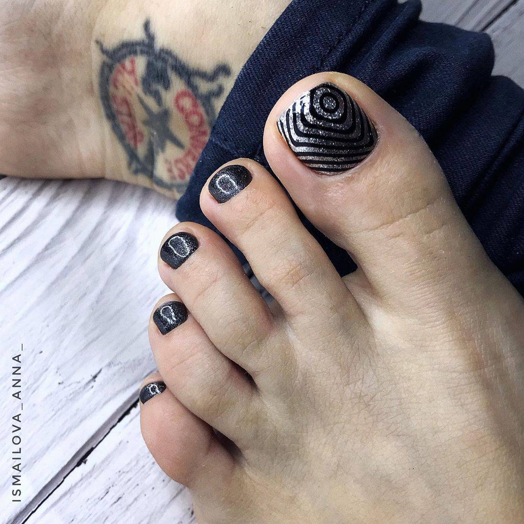Педикюр черного цвета не подойдет двум типам девушек: тем, кто предпочитает светлый, жизнерадостный стиль, без капли темных элементов, а также тем, кто очень коротко подстригает ногти на пальцах ног.