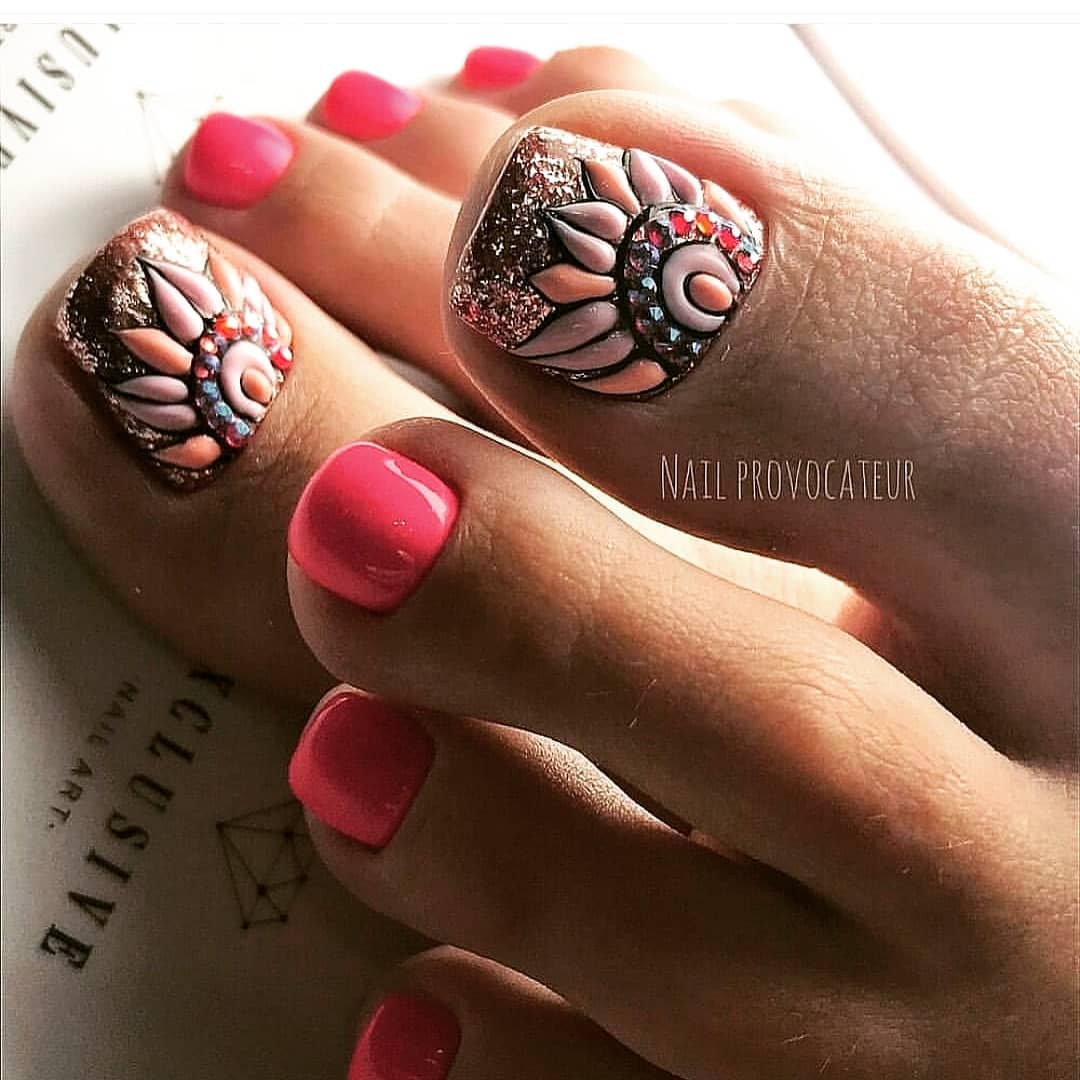 Модницы очень любят украшать свои ногти на ножках рисунками, сделанными мастером вручную. Такое украшение ногтей выглядит более благородно. А так как абсолютно одинаковые рисунки сделать сложно, вы с уверенностью можете считать себя обладательницей (носительницей) уникального в своём роде дизайна.