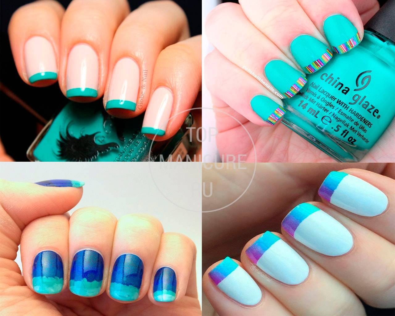 Бирюзовый френч также можно сделать разными способами. Давайте разберем их более подробно: