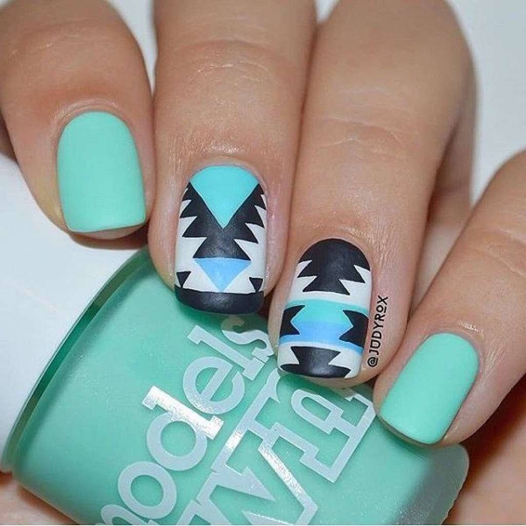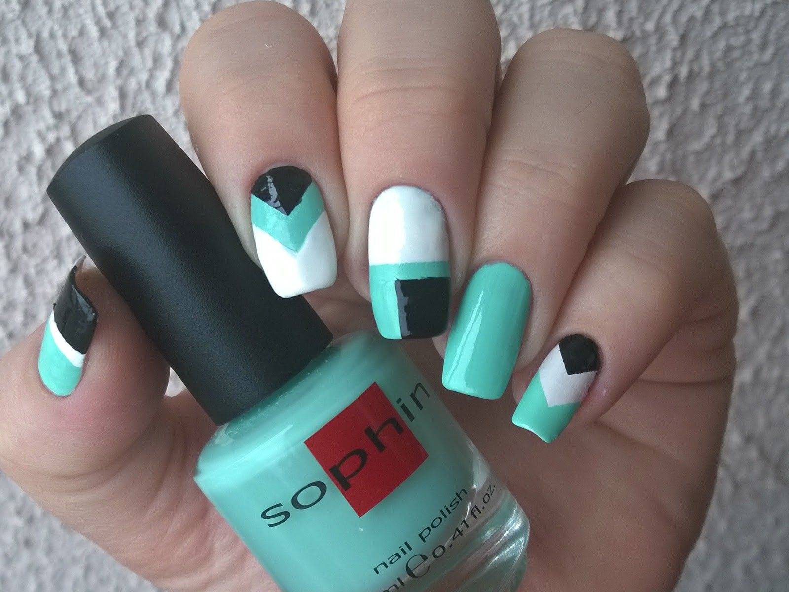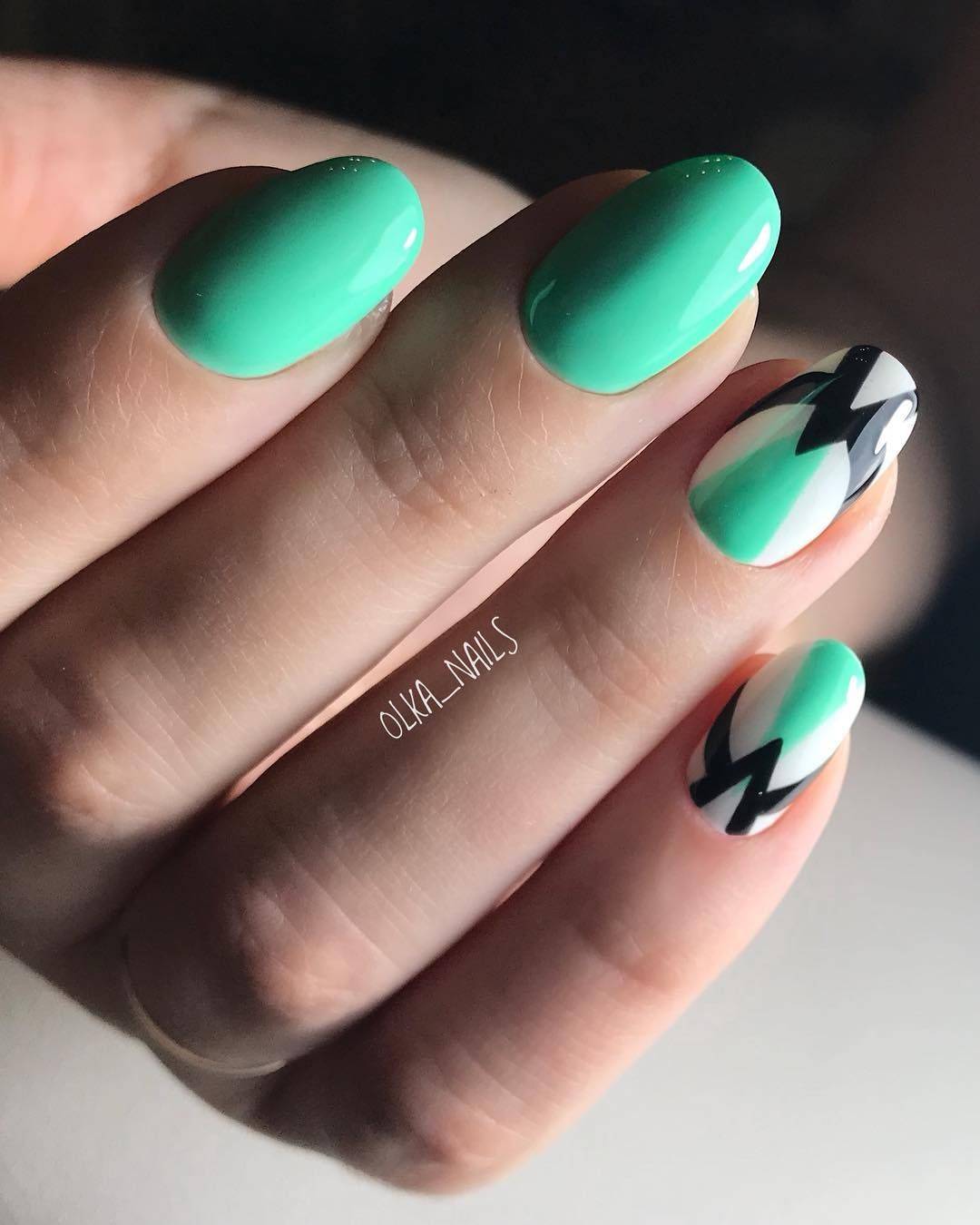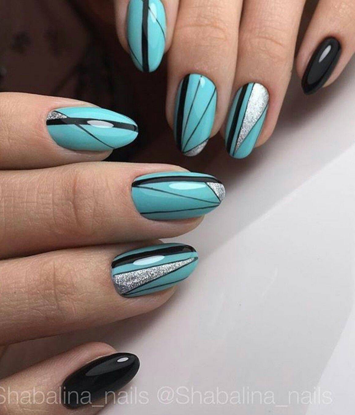 Геометрический маникюр в бирюзовом цвете на короткие ногти 2019