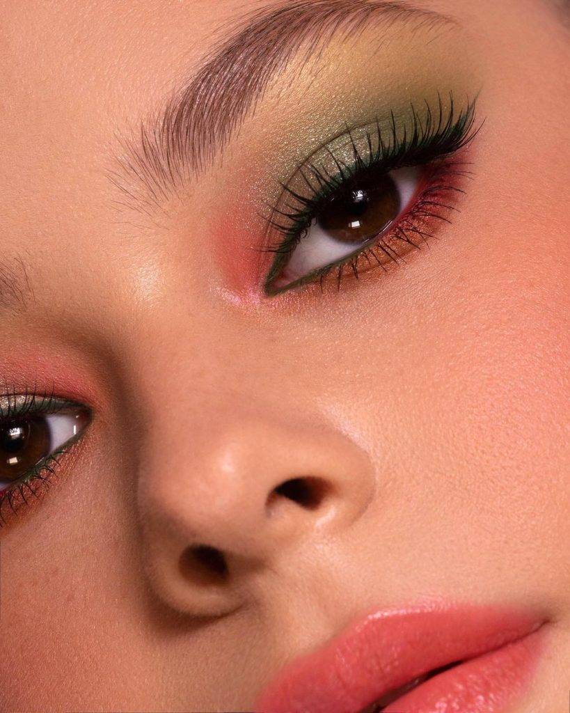 Здесь можно не бояться продуктов с оранжевым подтоном. Ваш выбор теней — нейтральный коричневый, медный, персиковый, лососевый, дынным или даже ярко-оранжевым. Можно экспериментировать с розовыми и фиолетовыми оттенками.