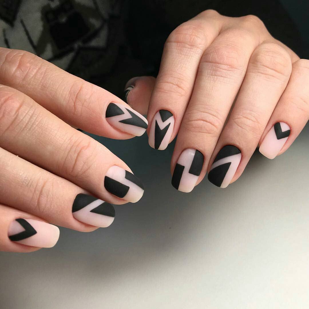 Современный дизайн черных матовых ногтей