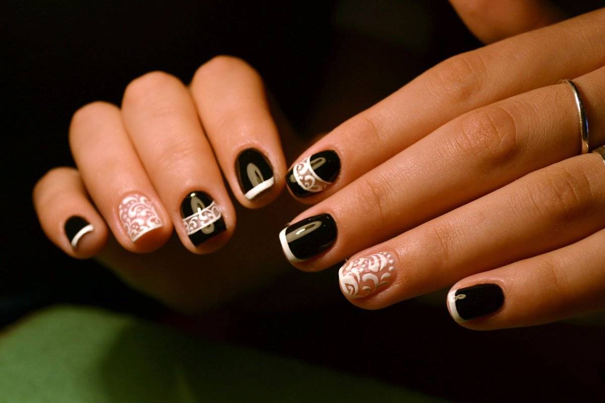Короткие ногти по душе многим девушкам, благодаря их удобству, практичности и приближенности к естественной форме ногтей. Черный френч может существенно сократить и без того небольшую ногтевую пластину. Однако придерживаясь некоторых особенностей создания черного дизайна, можно получить шикарный маникюр: