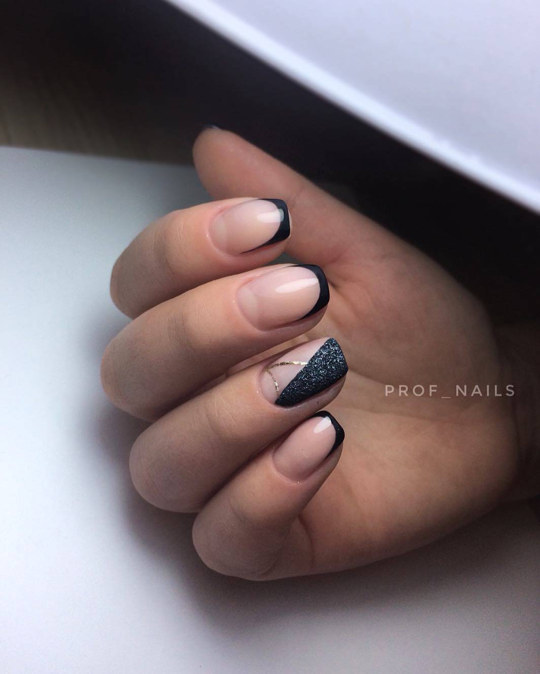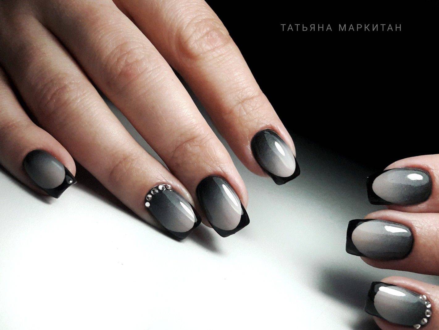 Черный френч на коротких ногтях: фото-новинки сезона