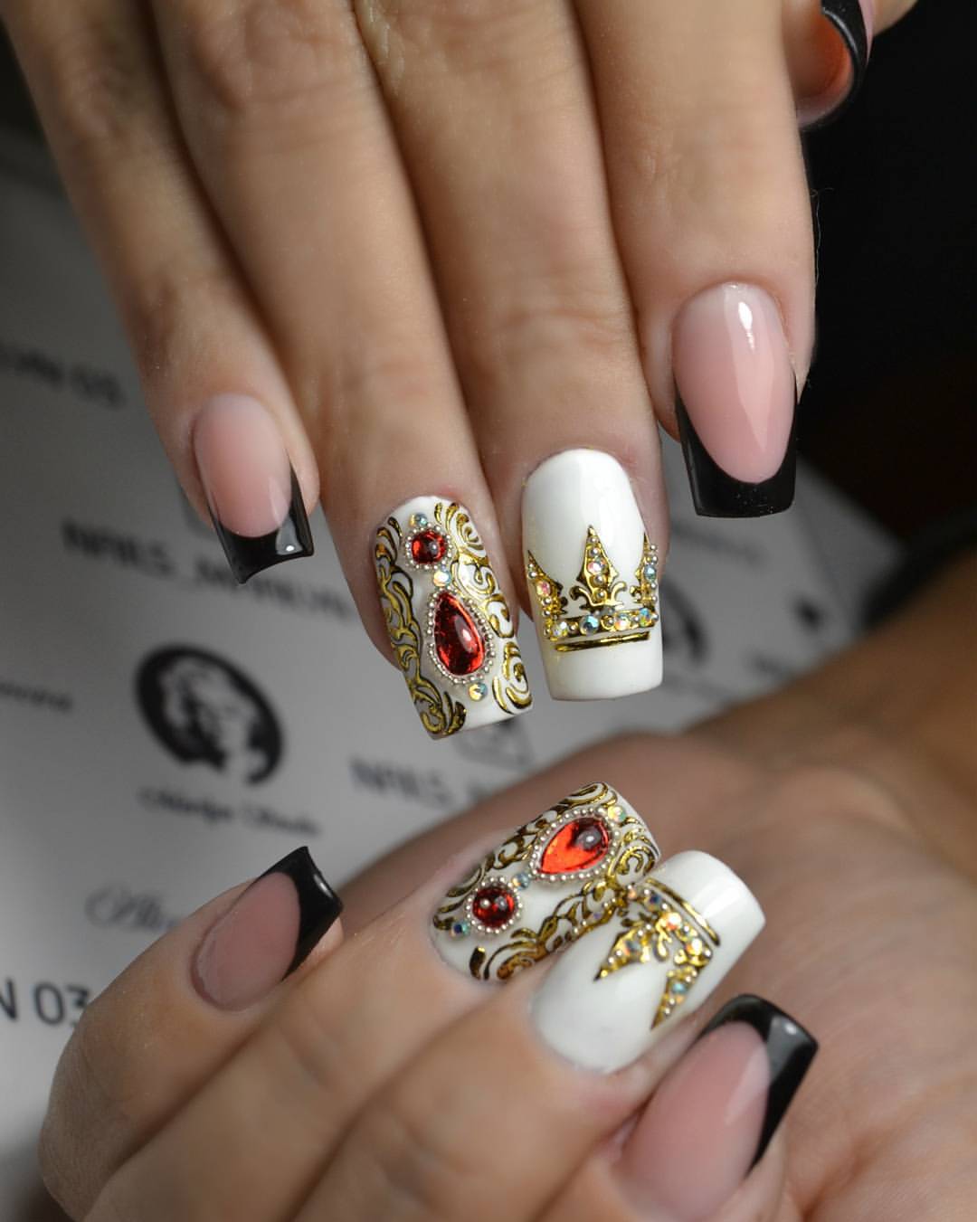 - подчеркивать белым гель-лаком свободный край на ногте с декором не обязательно;