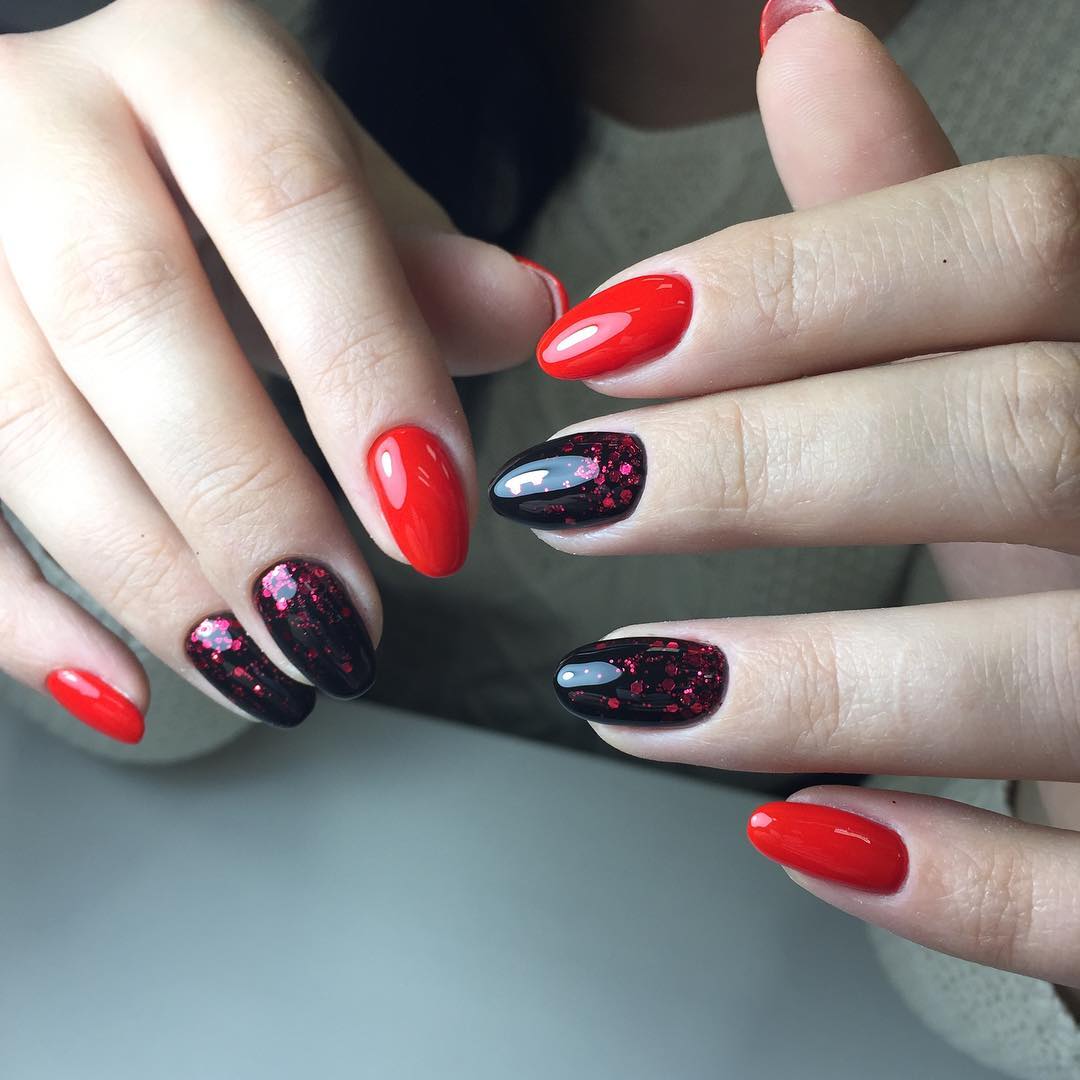 Любительницы сочетать красный и черный цвет в маникюре — это девушки, которые хотят быть в центре внимания. Красно-черный маникюр часто выбирают девушки, у которых есть строгость в стиле одежды. При удачном сочетании черного и красного цвета в маникюре, можно визуально удлинить ногтевую пластину. Красно-черный маникюр можно разнообразить блестками, втиркой, росписью белого, золотого и серебряного цвета, сочетанием глянцевого и матового лака.