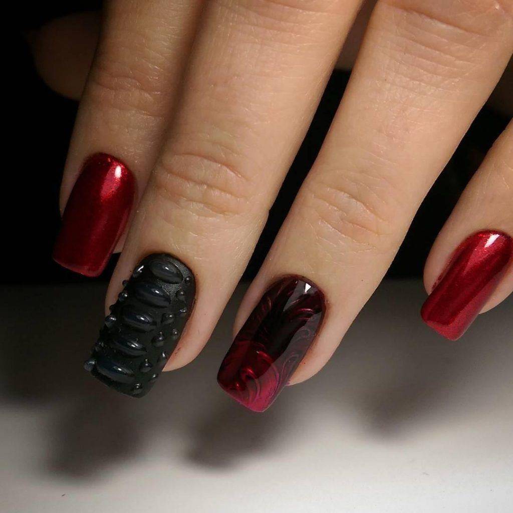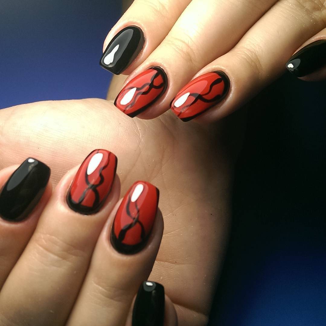 Эффектный маникюр в красно-черном цвете