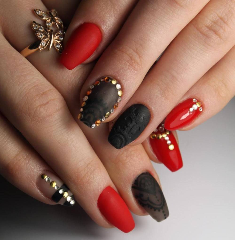 Черно-красный маникюр: новинки стильных нейл-артов