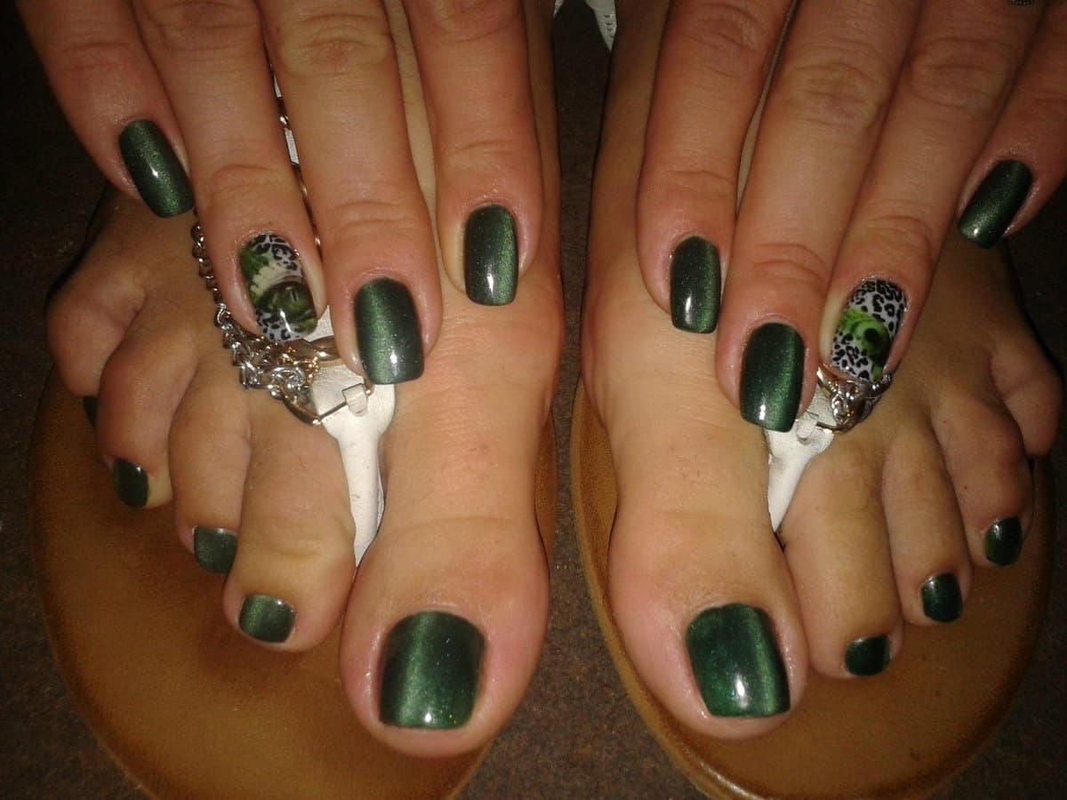 Ещё один из важных нюансов зелёного педикюра: если вы работаете в офисе, и в тёплое время года носите при этом открытую обувь (босоножки или открытые туфли), вам по дресс-коду может быть не положен зеленый педикюр. Согласитесь, получить выговор от начальства за свои яркие дизайны ногтей будет не очень приятно, и даже в какой-то мере обидно. Так что выбирайте более мягкие и нейтральные тона.