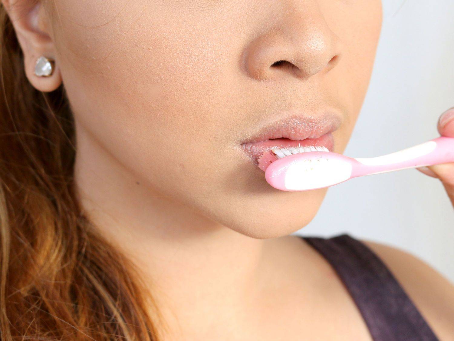 - С губ. Средство для демакияжа, подходящее для этой части лица, нанесите на ватный диск. Если косметика водостойкая, понадобится двухфазный лосьон. Если яркая краска все же осталась на губах, удалите ее мягкой зубной щеткой массажными движениями. Вместо скраба можете использовать смесь сахара с оливковым маслом.