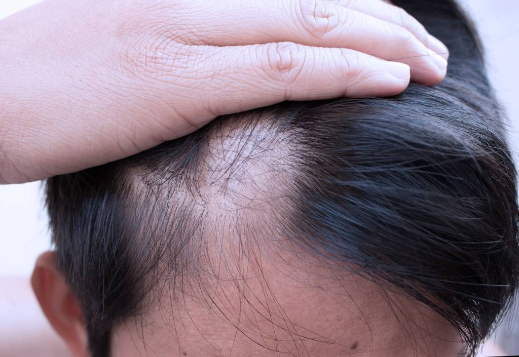 Диффузное выпадение волос преимущественно начинается с постепенной их потери. Первоначально наблюдается облысение одной полосы на темечке, через которую можно рассмотреть кожу головы.