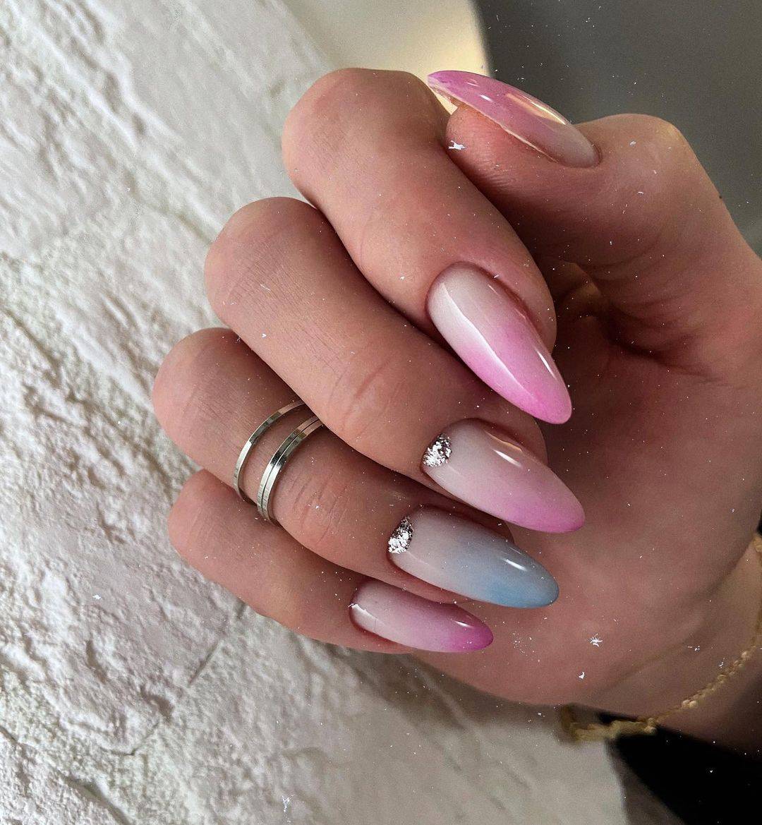 - Миндаль. Форма, которую стоит делать только обладательницам длинных тонких пальцев с вытянутым ногтевым ложем. Иначе руки будут казаться нескладными. Чтобы придать ногтям миндалевидную форму, необходимо у готового квадрата спилить углы под 60˚, после чего сгладить край.