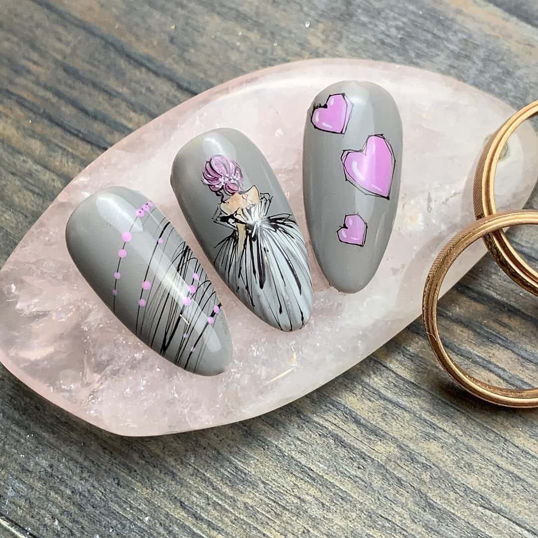 Исключение составляет маникюр, где сделан акцент на 2 – 3 ногтях, отличающихся по форме.