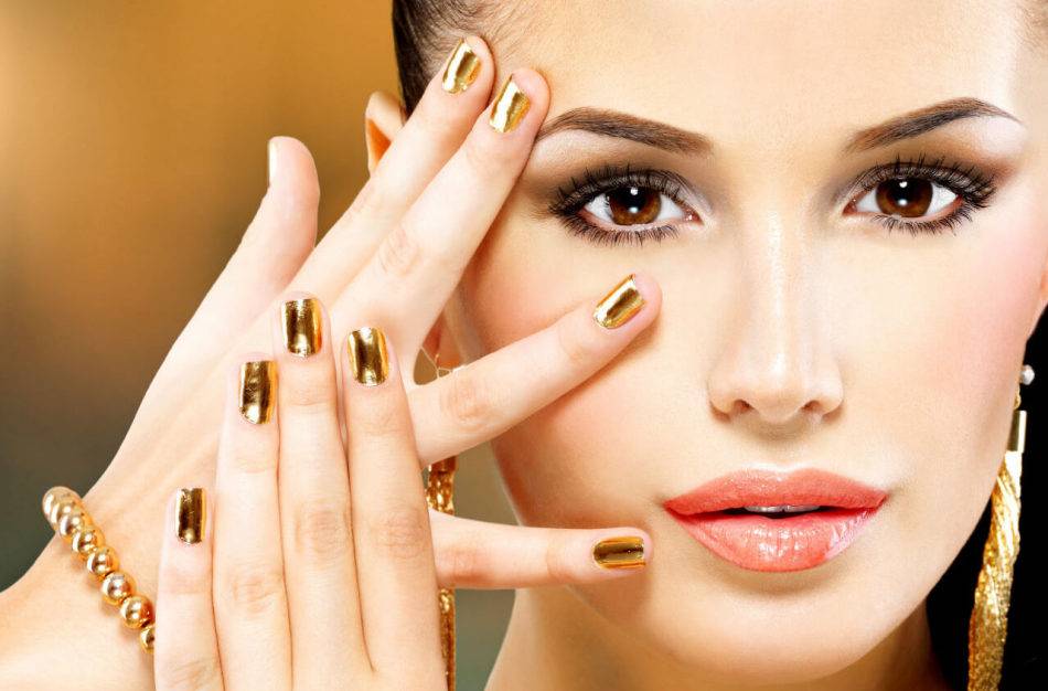 Чаще всего при выборе тональности лака учитывают цвет обуви, сумочки и даже украшений. Уместно будет под золотые украшения накрасить ногти золотистым цветом, а под туфли бежевого цвета, применить лак песочного или бежевого оттенка.