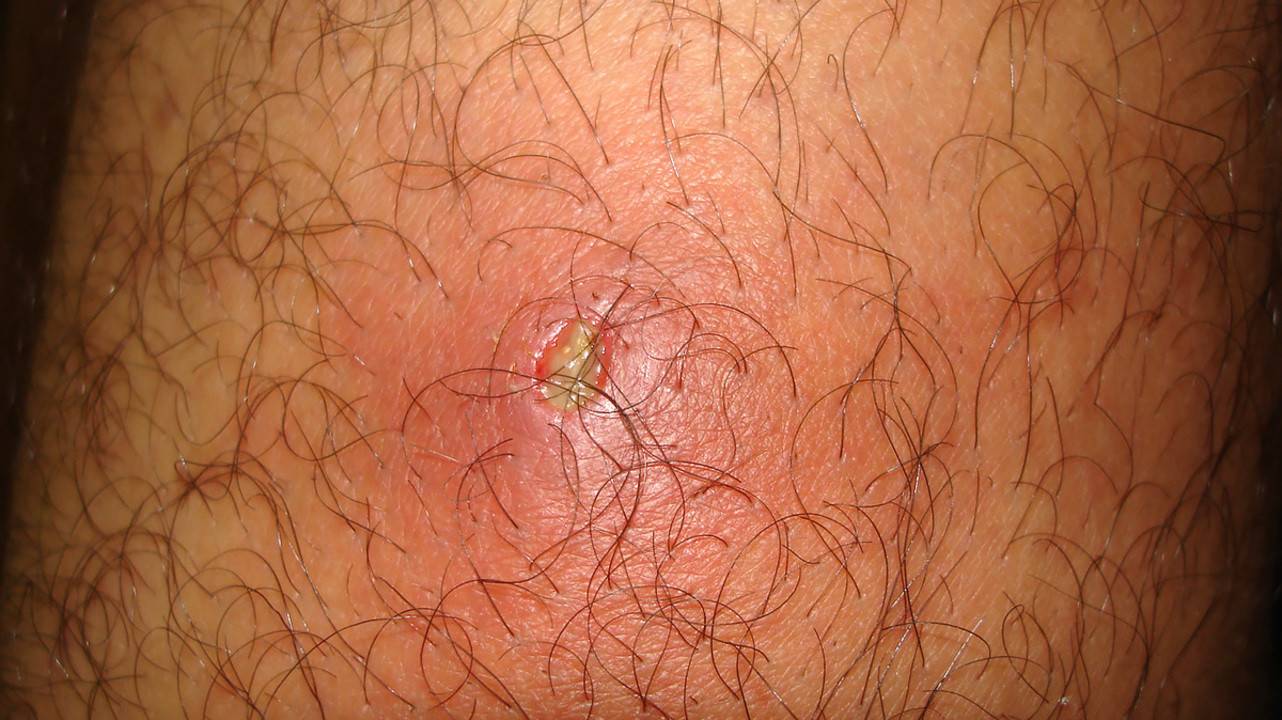 Фурункул развивается, когда воспаляется волосяной фолликул. Фото: Mahdouch at French Wikipedia (Creative Commons Attribution 1.0 Generic license)