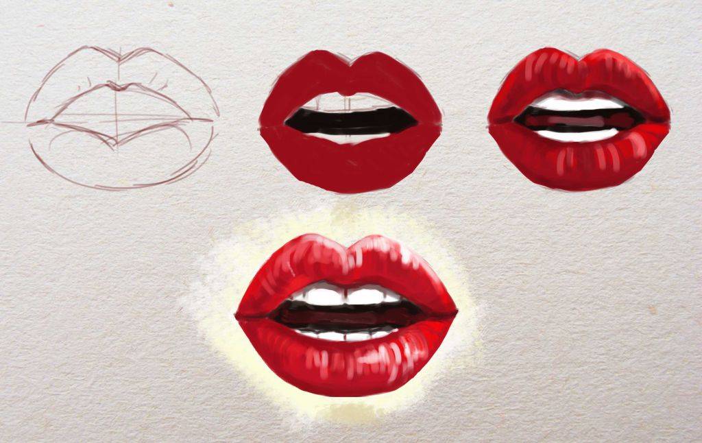 Поэтапное правильное рисование губ