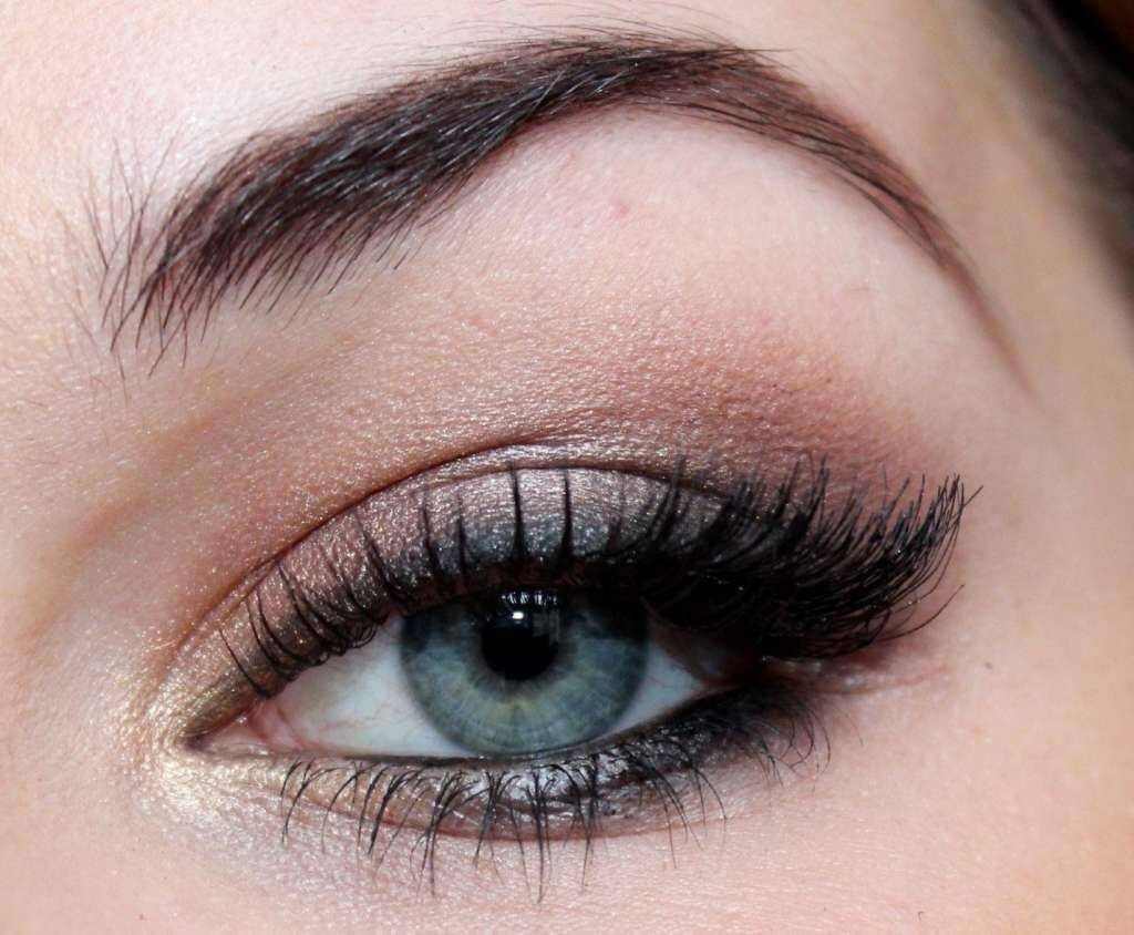Для макияжа смоки айс для серых глаз подойдут как серебристые тона, так и коричневые, бежевые, оттенки металлик. Хотите чего-то экстравагантного? Попробуйте уйти в темный цвет, например в черный с золотом.