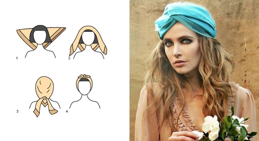Итак, простые и незамысловатые способы украсить свою голову длинным неплотным шарфом: