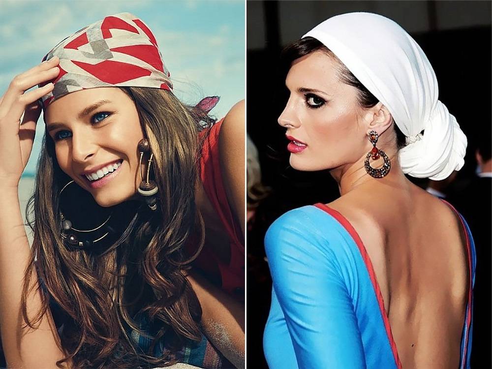 - Длинные аксессуары. Позволяют экспериментировать со схемами завязывания на голову. Преимущество – есть возможность укрыть и шею.