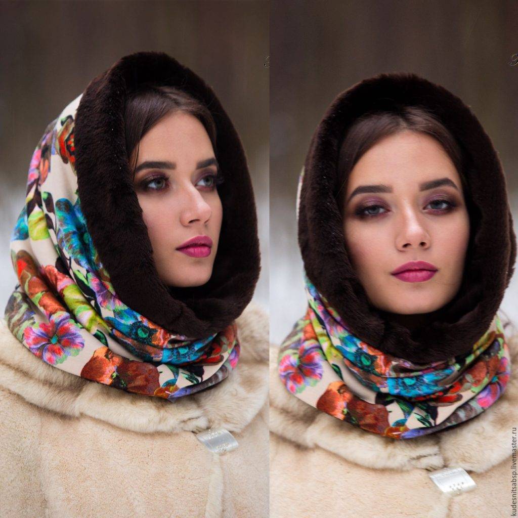 - Широкие шарфы – используют как капюшон, шапку и шарф.
