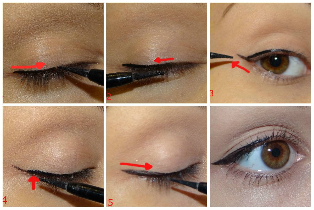 Важно следить за формой и направлением дуги, не приближая ее к вертикали и не опуская скорбно уголки. Среди проверенных способов популярны широкие стрелки на глазах