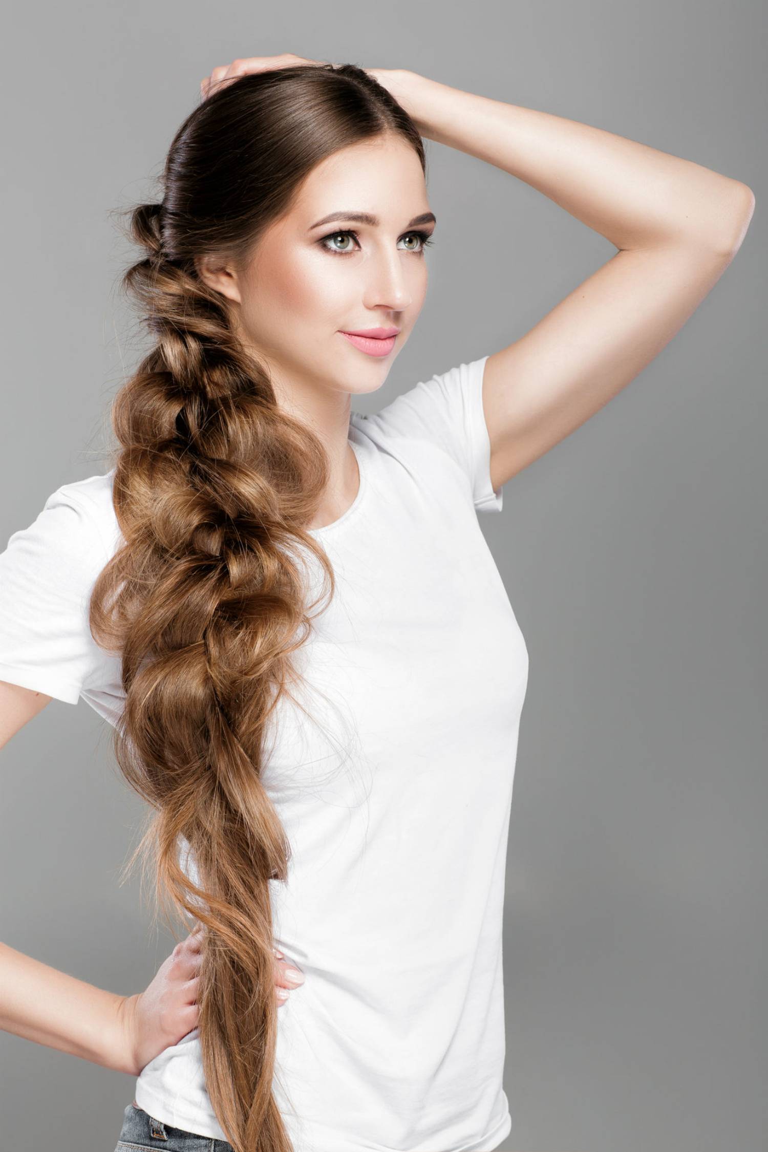 - Рекомендуем слегка растягивать косу для придания объема.