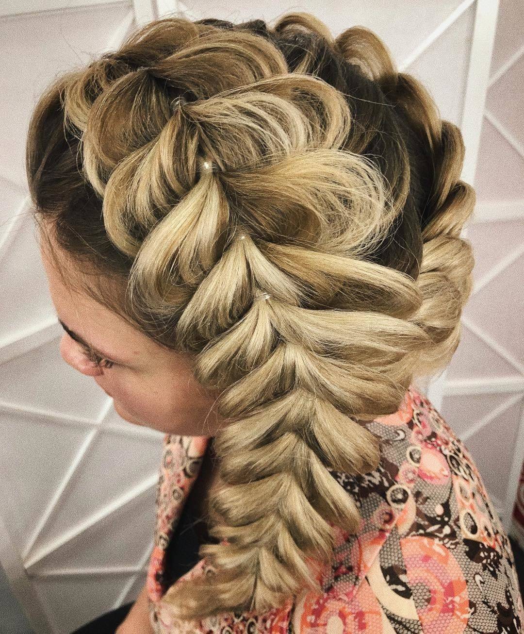 - Отделается небольшое количество локонов, начинается плетение по типу «рыбий хвост».
