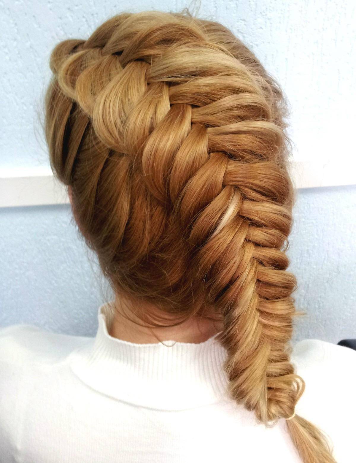 Такой вид прически собирает полностью всю волосяную массу и плетется следующим образом: