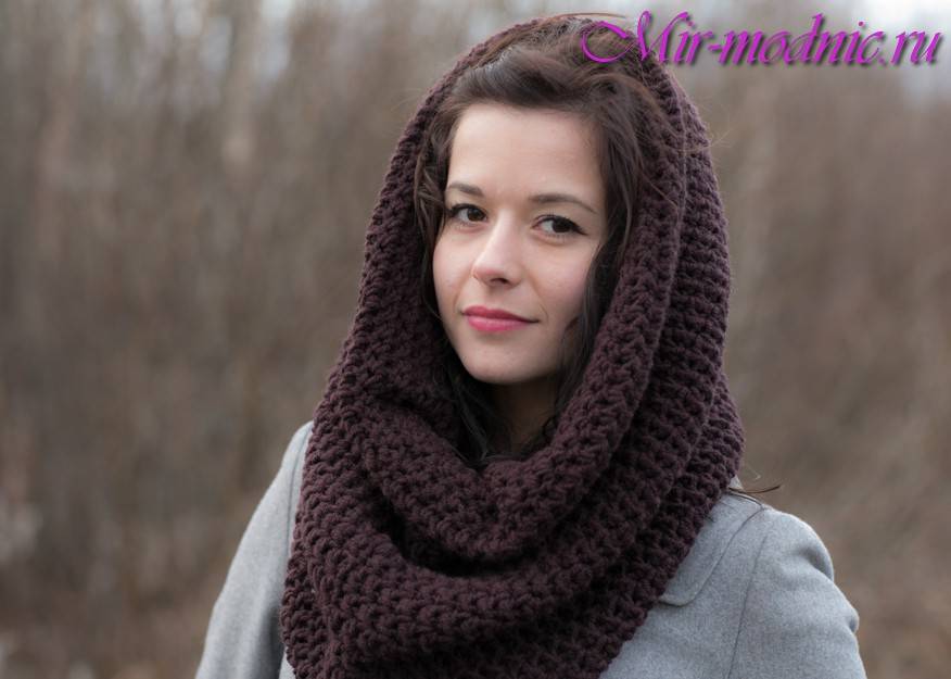Снуд – это универсальный шарф, который можно носить миллионом разных способов. Его можно связать самостоятельно или купить вместо обыкновенного шарфа и шапки.