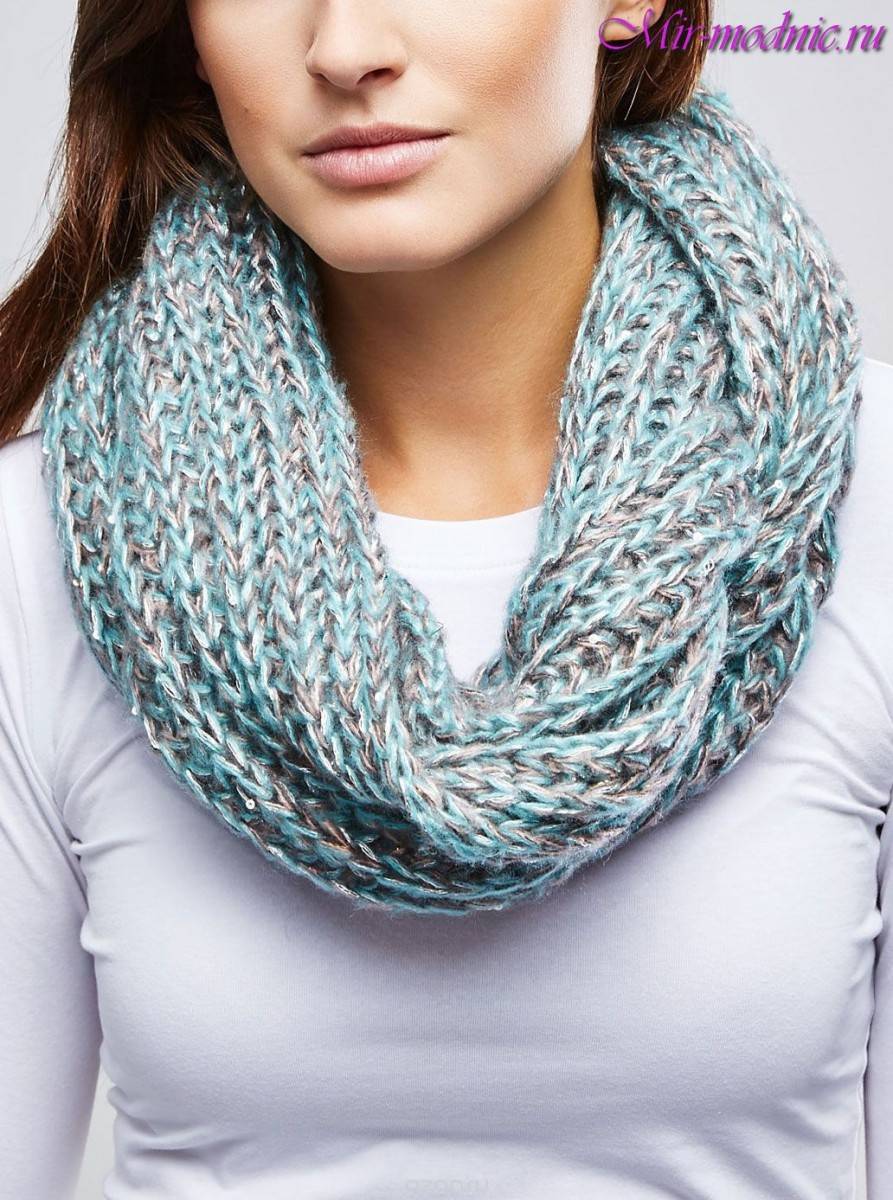 В наше время снуд крепко полюбился прекрасному полу. И зимой и летом он пользуется успехом у модниц. Они носят его под платья, футболки, пальто, пуховики, кожаные куртки и даже шубы.