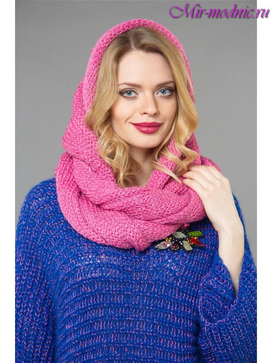 - Практичность. Как уже было упомянуто, таким шарфом можно заменить головной убор, шарф и капюшон.