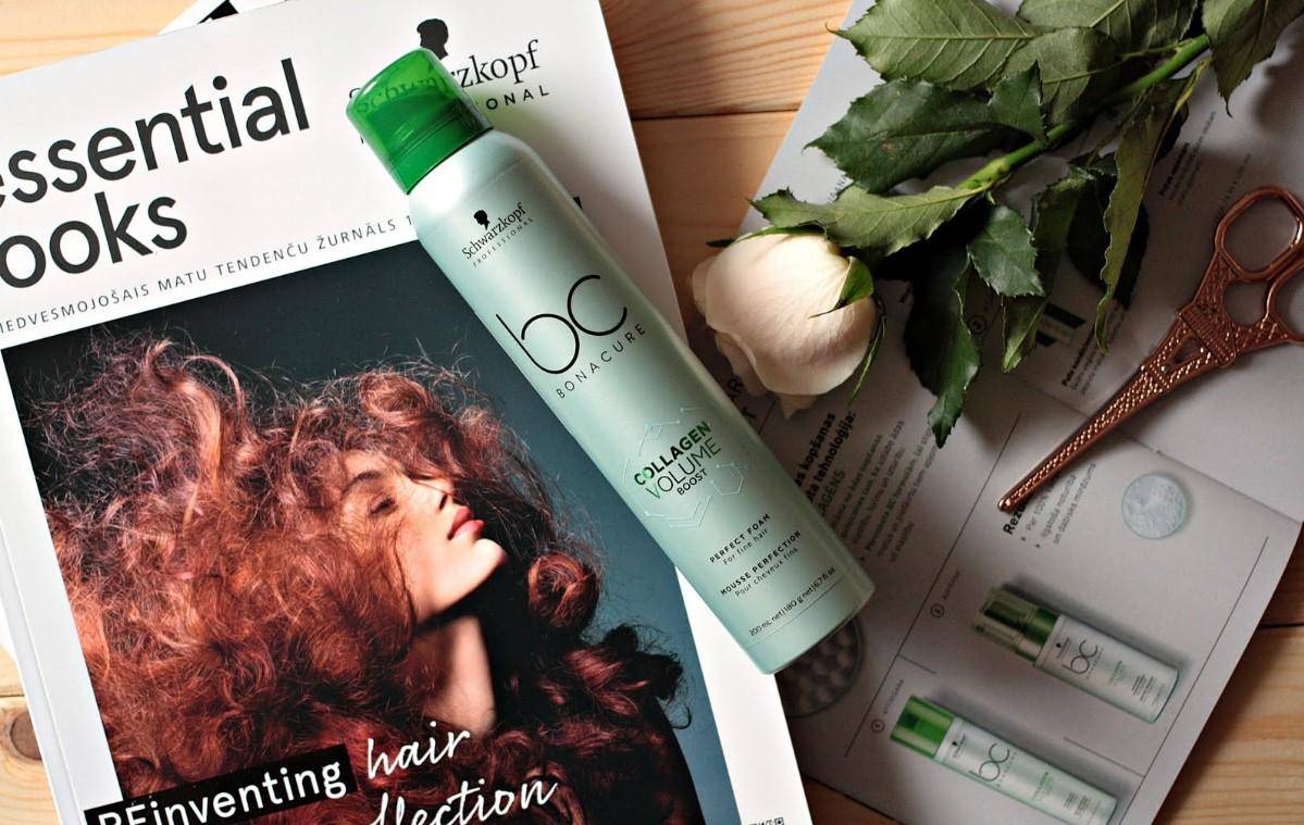 Ещё одна отличная серия с такой направленностью – Collagen Volume Boost от Schwarzkopf. Она выполнена на основе главного ингредиента – коллагена. Это её особенность. Он помогает сохранять упругость структуры и придаёт объём. Состоит гамма из: