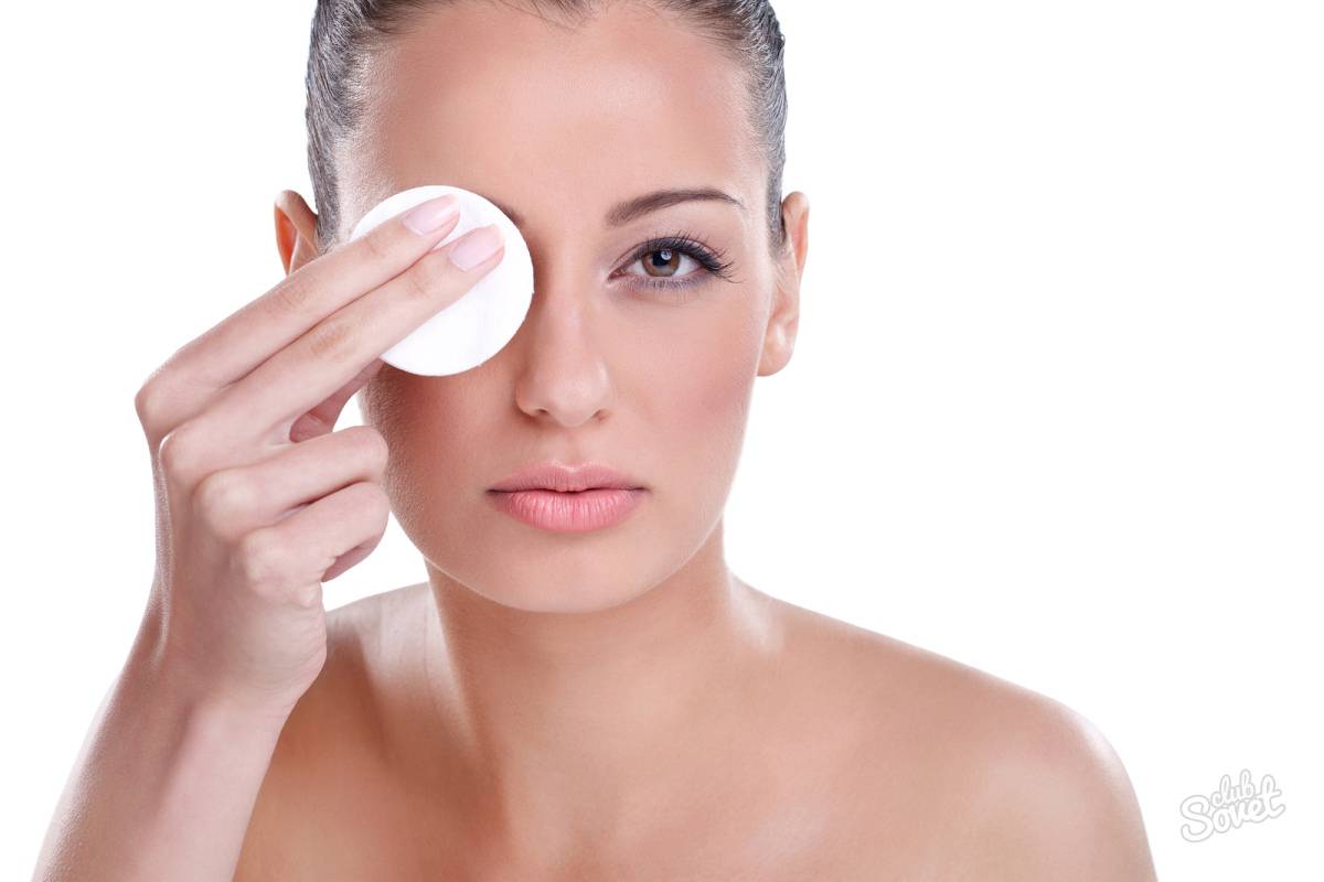 - Кожу век следует очистить тоником, а разрезанный ватный диск поместить под нижние ресницы при плотно закрытом глазе.