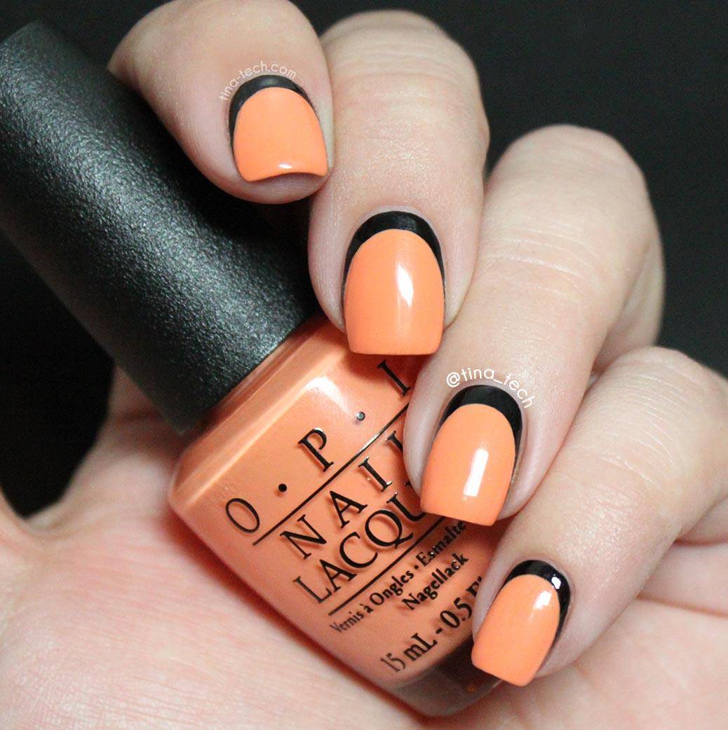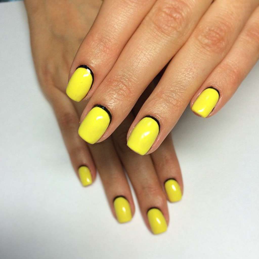 - накрасьте кромку ногтя контрастным лаком. Для этого используйте трафарет, наклейку или кисточку.