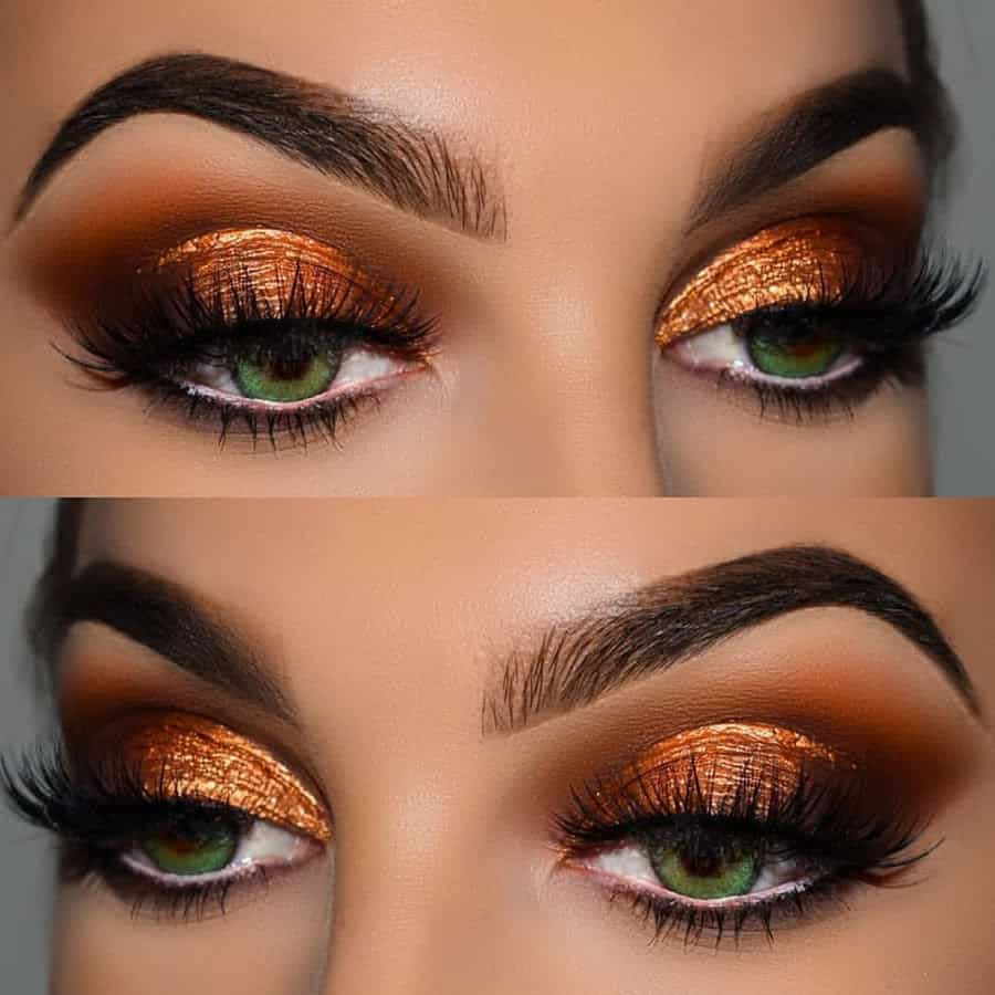 - Медные оттенки должны быть на матовой основе, чтобы взгляд получился выразительным и теплым.