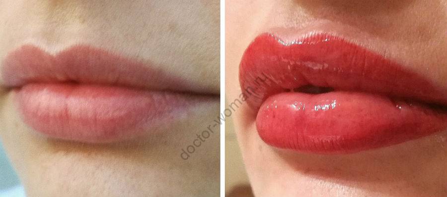 Лечение губ гиалуроновой кислотой до и после процедуры