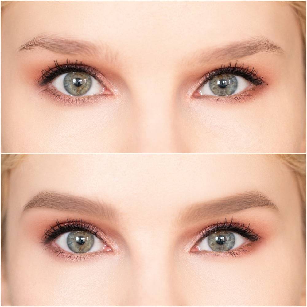 - Откорректировать расстояние между глаз можно, если грамотно подобрать ширину между бровями. При близкой посадке это расстояние следует увеличить;