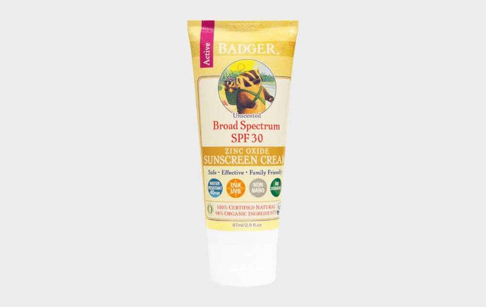 Badger SPF 30 Unscented Sunscreen Cream на основе оксида цинка (физический фильтр) содержит всего 5 компонентов. Простой, безопасный и бюджетный