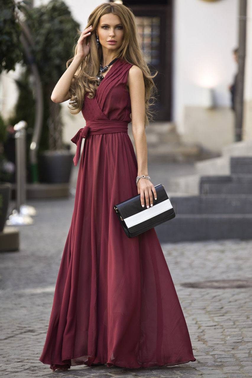 Платье бордового цвета – универсальная и практичная вещь, которая великолепно выглядит на всех девушках. Мнение о том, что насыщенные бордовые тона лучше смотрятся на брюнетках, ошибочно. Такой наряд привлекательно будет выглядеть на обладательницах желтой, оливковой кожи.