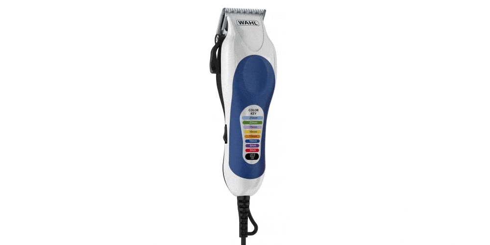 Третье место занимает Wahl 79300-1616. Достойный конкурент Remington. Оснащена самозатачивающимися лезвиями, комплектуется 8 насадками разных цветов (1.5, 3, 6, 10, 13, 16, 19, 22, 25 мм). На корпусе машинки имеется схема распознавания насадок по цветам — преимущество перед конкурентом. Второй плюс — турборежим. Дополнительно укомплектована 2 насадками для стрижки за левым и правым ухом. Комплект — ножницы, расческа, пластиковый футляр, щёточка для чистки и масло. Длина среза лезвием регулируется ножкой в диапазоне от 1 до 3 мм. Цена – 4600 рублей.