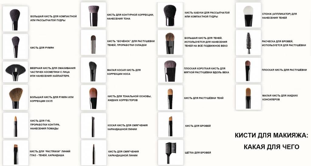 Разберемся в видах инструментов для макияжа, какая из кисточек для чего нужна. С описанием базового набора основных кистей познакомимся ниже.
