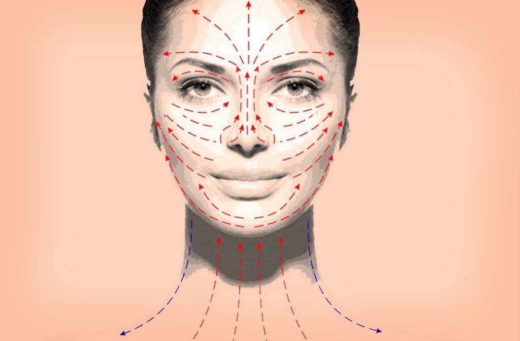 Все движения совершаются по массажным линиям. Предлагаем ознакомиться с подробной схемой массажных линий.